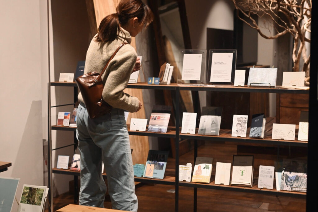 1階のカフェでコーヒーを片手に、紙の上の表現をじっくり味わう時間が流れていました。