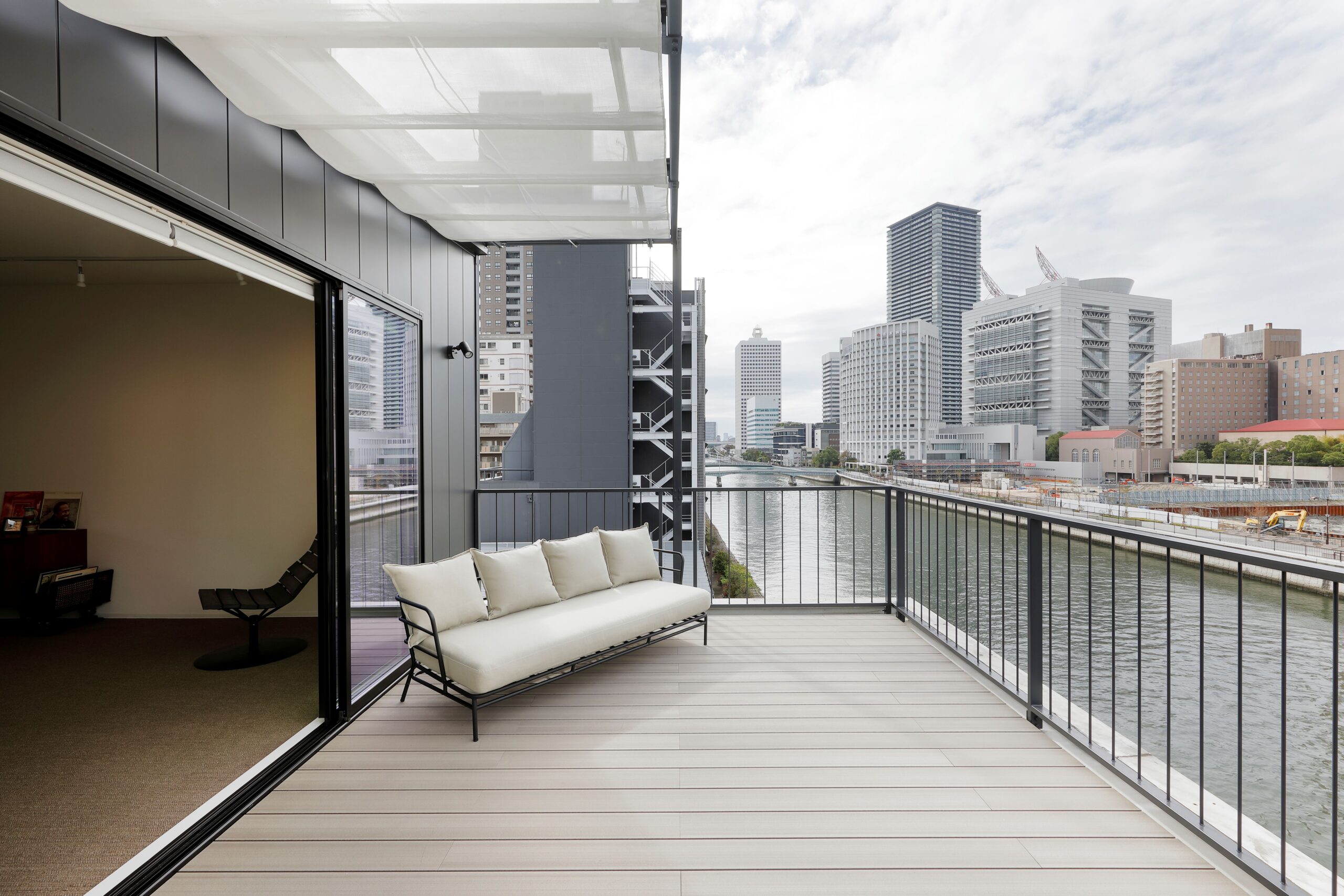 目の前には土佐堀川が流れ、開放感あふれる水辺の景観が、日々の業務に心地よい余白を与える。